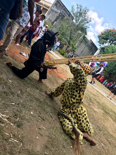Después del recibimiento, donde intercambian botellas de licor y cajetillas de cigarro, los representantes de la comunidades- autoridad municipal, Tatamandones y el Fiscal de la iglesia- son acompañados hasta la iglesia de San Andrés, donde rezan por un momento para luego, culminar el ritual en el corredor del palacio donde degustan el platillo sagrado del Caldo de Cavio (carne de res ahumada con palo de huarumo).